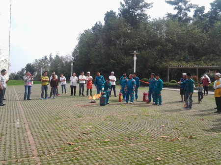 百江燃气公司工作人员首先给各经营户简明详实的讲解了液化气的有关注意事项:1、液化气的特性:当液化气在空气中的体积含量达到2%-9%时,遇火即爆炸,爆炸时相当于70吨推力,相当危险。当有少量液化气泄漏时,应打开门窗、严禁烟火,用扫把空扫。2、在使用液化石油气前,必须做到“二先二后”,即先检查、后使用,先关阀、后熄火。3、在上减压阀前,应确定胶垫在时再上好。上好后,先用肥皂水检查是否漏气,漏气不能处理的应通知燃气公司前往处理。4、必须保证使用环境干净:墙壁、灶等一定要定期打扫干净,当漏气燃烧有油时燃速极快,极易引发重大火灾事故。5、钢瓶的胶管长度为1—2米,钢瓶上不能摆放任何物体。6、当液化气瓶有少量泄漏并起火时,应立即用湿毛巾覆盖起火点进行灭火并迅速关闭钢瓶阀门;当液化气泄漏起火燃烧时,应立即用干粉灭火器对准起火点进行灭火,并立即关闭钢瓶总阀(工作人员还向经营户讲解了灭火器的使用要点及注意事项:先检查确定灭火器指针在绿色区域,打开灭火器销子,在2米外对准火源灭火) 。随后,工作人员现场对液化气泄漏起火的灭火方法进行了现场实操演示,食堂各经营户也陆续进行了现场实操演示。