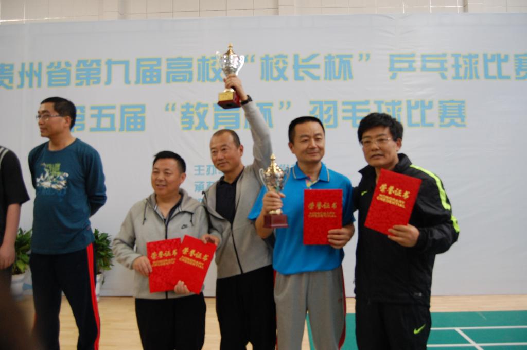 在第一阶段的小组比赛中,由龚辉副院长、贵州医科大学罗俊副院长、彭琳、符江潮四位老师组成的羽毛球男双、女双分别以小组第一的成绩挺进第二阶段淘汰赛。龚辉副院长所代表的男双在淘汰赛中越战越勇,以2:0的绝对优势淘汰贵州城市学院顺利进军厅级干部组半决赛。最终我院代表队分别在羽毛球赛中获得厅级干部组第三名,女子组第五名的佳绩。