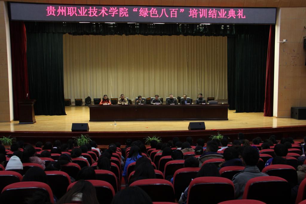 2015年12月18日下午14:30,贵州职业技术学院“绿色八百”培训班在大礼堂迎来了结业典礼。此次培训历时1周,共分3期培训,人数达到近800人。