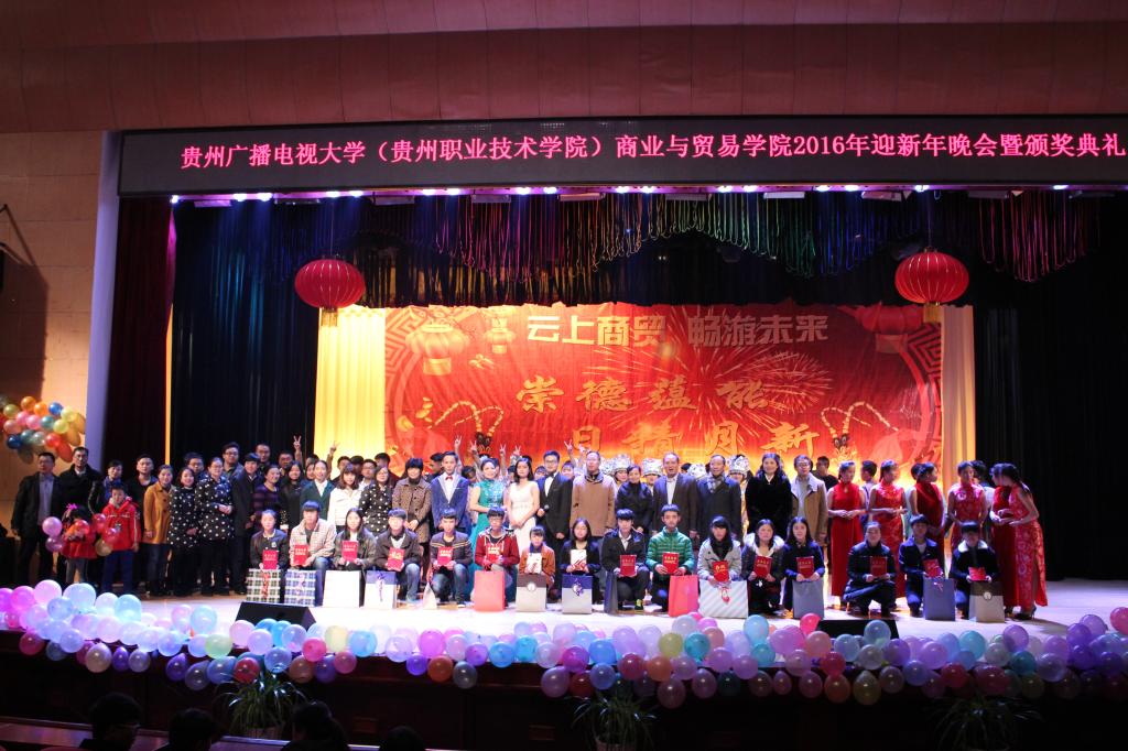 最后,商贸学院统一对学生会优秀学生干部,奥鹏学院奖学金获得者,中邮政贵州物流速递有限分公司实训优秀学生,寝室文化艺术节获奖寝室及个人进行了表彰。晚会在师生充满温馨的合影中落下帷幕。