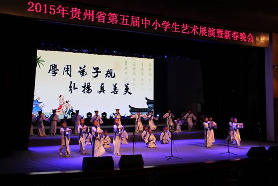 为充分展现中小学生热爱祖国、朝气蓬勃、勇于探索、健康向上的精神风貌,弘扬中华民族优秀文化,体现时代特征、校园特色、学生特点,以“阳光下成长”为主题的全省第五届中小学生艺术展演暨新春晚会在我校礼堂举行。省委教育工委副书记李涛老师,贵州广播电视大学(贵州职业技术学院)党委书记邓惠宾老师,党委副书记郭万才老师出席晚会。各市(州)教育局、贵安新区社会事务管理局,省直管县教育局,厅属高中(中职)负责人和中小学师生代表800余人参加展演。