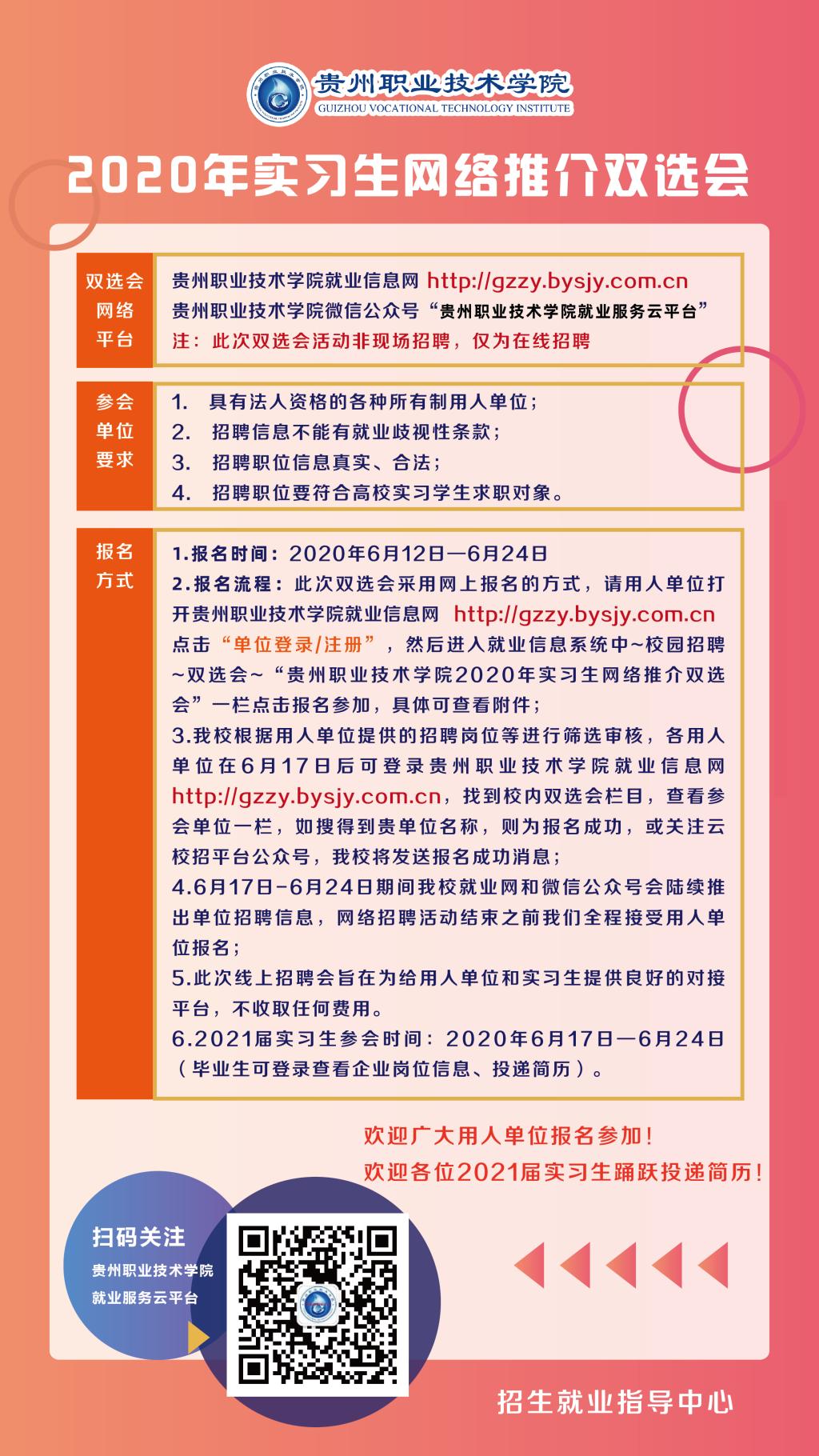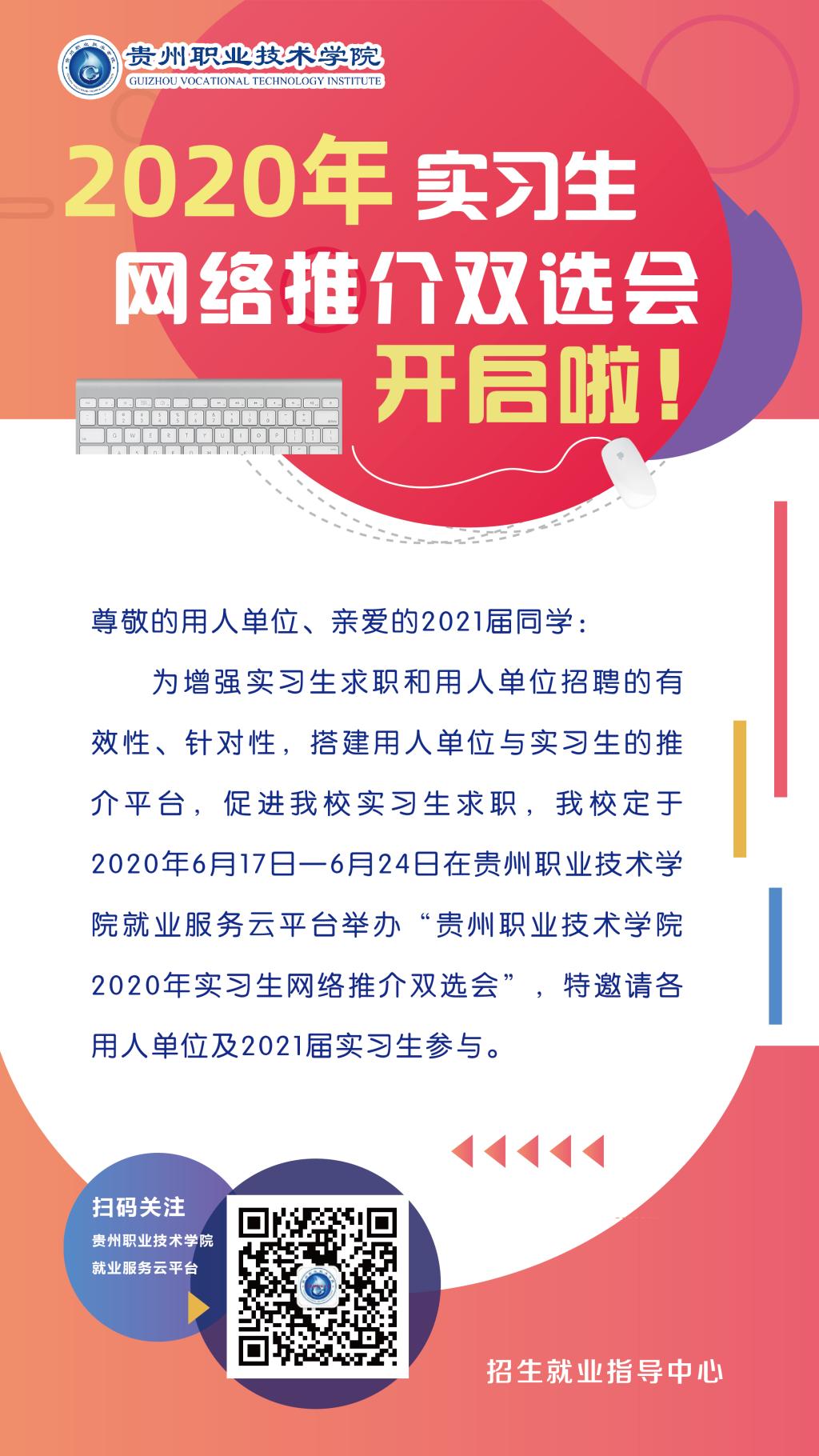 贵州职业技术学院2020年实习生网络推介双选会活动通知