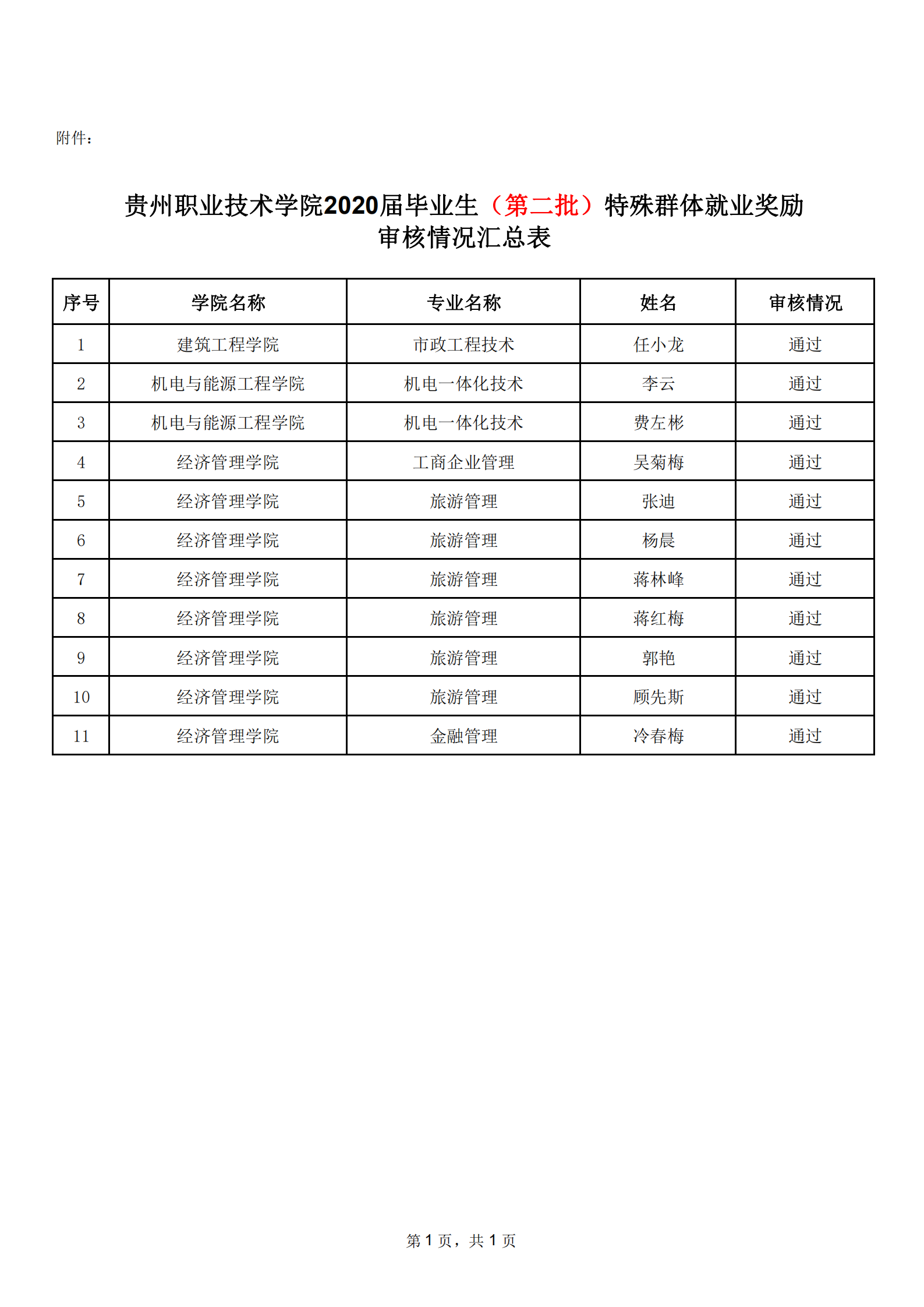 贵州职院2020届毕业生(第二批)特殊群体就业奖励审核情况汇总表