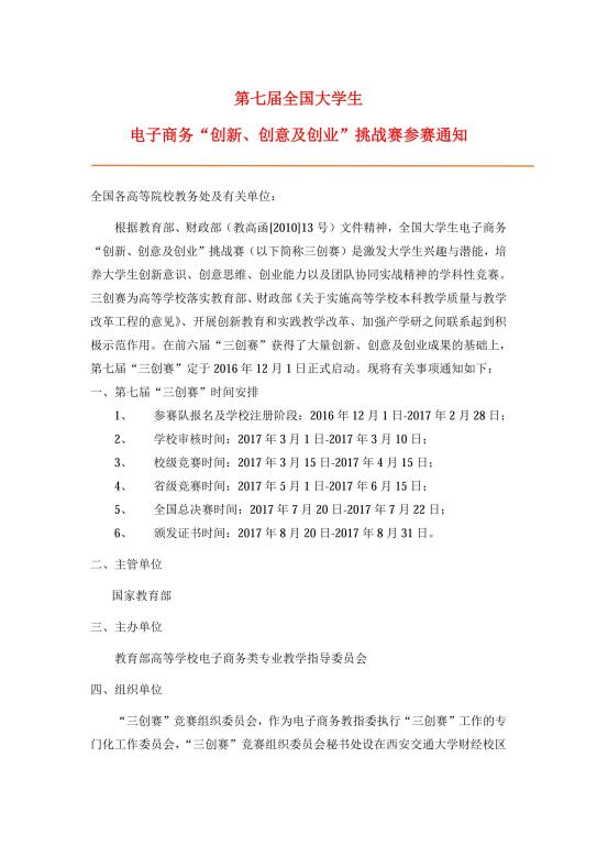第七届全国大学生电子商务“创新、创意及创业”挑战赛参赛通知