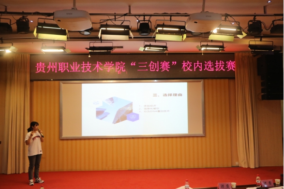 青春的张扬凝聚着创业的渴望,创新创意闪烁着思维的碰撞。为了让更多的同学了解创业、参与创业、实现创业,展示我校大学生创业培训和创业实践的成果,选拔和发现大学生创业人才,2020年6月19日上午,全国大学生电子商务“创新、创意及创业”挑战赛贵州职业技术学院校内选拔赛在我校图书馆报告厅举行。本次大赛由学校创新创业工作领导小组主办,商业与贸易学院承办。