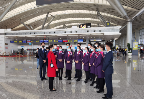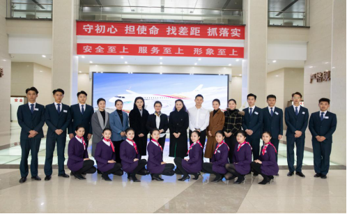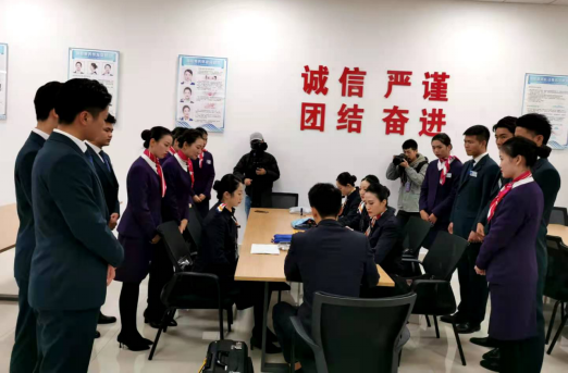 第二站贵州多彩航空公司,同学们观摩了GY7121贵阳——万州——天津、GY7175贵阳——遵义——石家庄两个航班任务的航前准备会,真实体验了空勤乘务组在飞行预先准备阶段的工作内容。同学们结合专业课程知识,与乘务组深入交流,深刻感受到了民航业对于安全与服务这个永恒主题的重视。