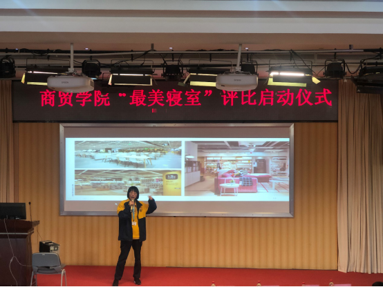 启动仪式上,袁德臻老师首先指出良好的宿舍文化在很大程度上对大学生的成长和成才,以及人生观、行为方式、人际关系等各方面的形成,都起到了不可低估的作用。她强调劳动可以树德、可以增智、可以强体、可以育美,加强劳动教育对培养有担当的时代新人具有重大意义。而劳动教育应该就从珍惜同学身边生活的教室、校园环境开始,从自己每天生活的寝室开始。随后宜家贵阳商场邓经理对本次“最美寝室”评选活动的比赛流程、奖品、寝室改造案例作了分享,她表示宜家不仅仅可以作为商贸学院学生实习实训基地,通过不断加强合作,学生群体新颖的创意与活力为我们提供了很多灵感,同时宜家也很乐意为学生们的校园生活增添色彩。