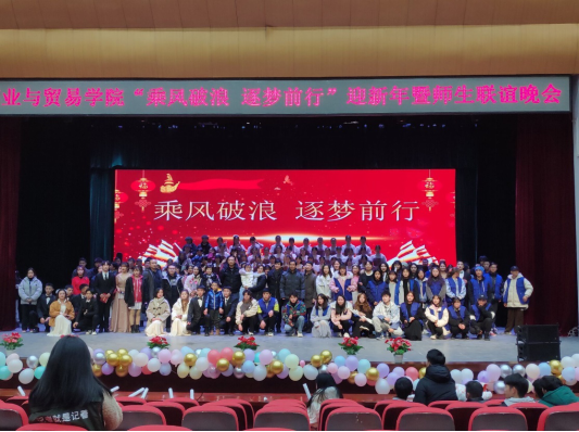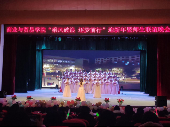 立冬前夕,初遇岁月闪光。为了增进师生间的交流和沟通,浓厚校园文化氛围,丰富同学们的课余生活。商贸学院“乘风破浪逐梦前行”迎新年暨师生联谊会于12月18日晚在学校大礼堂隆重举行,督查督办室主任郝致清、党委学生工作部部长姚楠、校团委副书记李雪芬、信息工程学院党总支书记赵勇、信息工程学院院长王道乾、建筑工程学院党总支书记罗之军、商业与贸易学院党政领导班子和900名师生代表共同出席本次晚会。