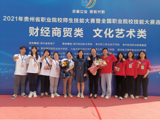 2021年5月7日-9日,贵州省教育厅主办的2021年贵州省职业院校师生技能大赛“会计技能”赛项、“智能财税”赛项分别在贵州轻工职业技术学院、贵州财经职业技术学院举行。来自全省的28支高职院校队伍参赛,我校商贸学院袁德臻院长领队,会计专业袁静和袁春燕老师指导的方安围、谭翠兰、张力、杨秀菊代表队经过三个赛段的激烈角逐,以贵州省第一名的成绩荣获“会计技能”赛项(高职组)团体一等奖,陈跃、陈美、蔡维倩、杨仪君代表队以第二名的成绩荣获“智能财税”赛项(高职组)团体一等奖。