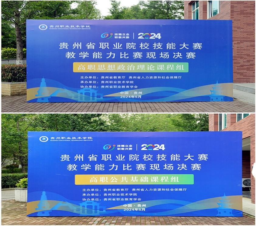 2024年贵州省职业院校技能大赛教学能力比赛由贵州省教育厅、贵州省人力资源和社会保障厅主办,共设置8个报名组别,其中高职思想政治理论课程组、高职公共基础课程组由我校承办,贵州省职业教育学会协办。本次比赛,经专家网络评审,我校承办的2个组别共18支队伍入围现场决赛,来自全省14所职业院校的72名教师齐聚爽爽贵阳展开角逐。